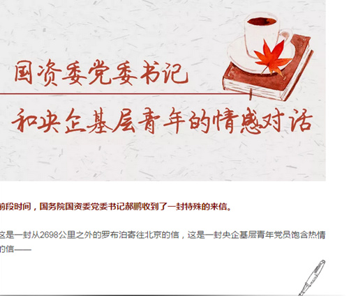 在這里,我也想就新媒體助力國企基層黨建,提一點小小的不成熟的建議:可否在“國資小新”新媒體平臺持續(xù)刊登基層黨建、國企改革理論等方面內容供我們學習成長?包括我們青年黨員成長的故事也可以多上一些,讓我們學有榜樣。