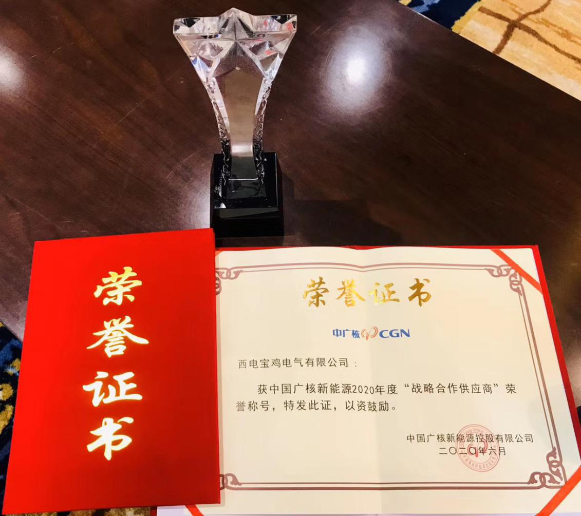6月11日,在北京召開的中國廣核新能源控股有限公司2020年供應(yīng)商大會(huì)上,西電寶雞電氣榮獲該公司“2020年度戰(zhàn)略合作供應(yīng)商” 榮譽(yù)稱號(hào)。