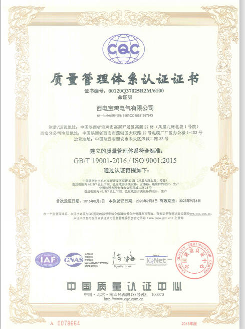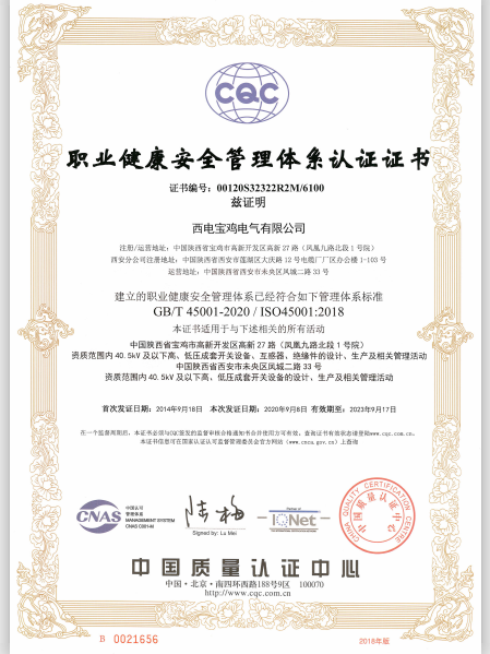 近日,西電寶雞電氣順利取得了由中國(guó)質(zhì)量認(rèn)證中心頒發(fā)的質(zhì)量、環(huán)境、職業(yè)健康安全管理體系新的認(rèn)證證書(shū),標(biāo)志著該司質(zhì)量、環(huán)境管理體系的復(fù)評(píng)換證,職業(yè)健康安全管理體系的換版工作圓滿(mǎn)完成。
