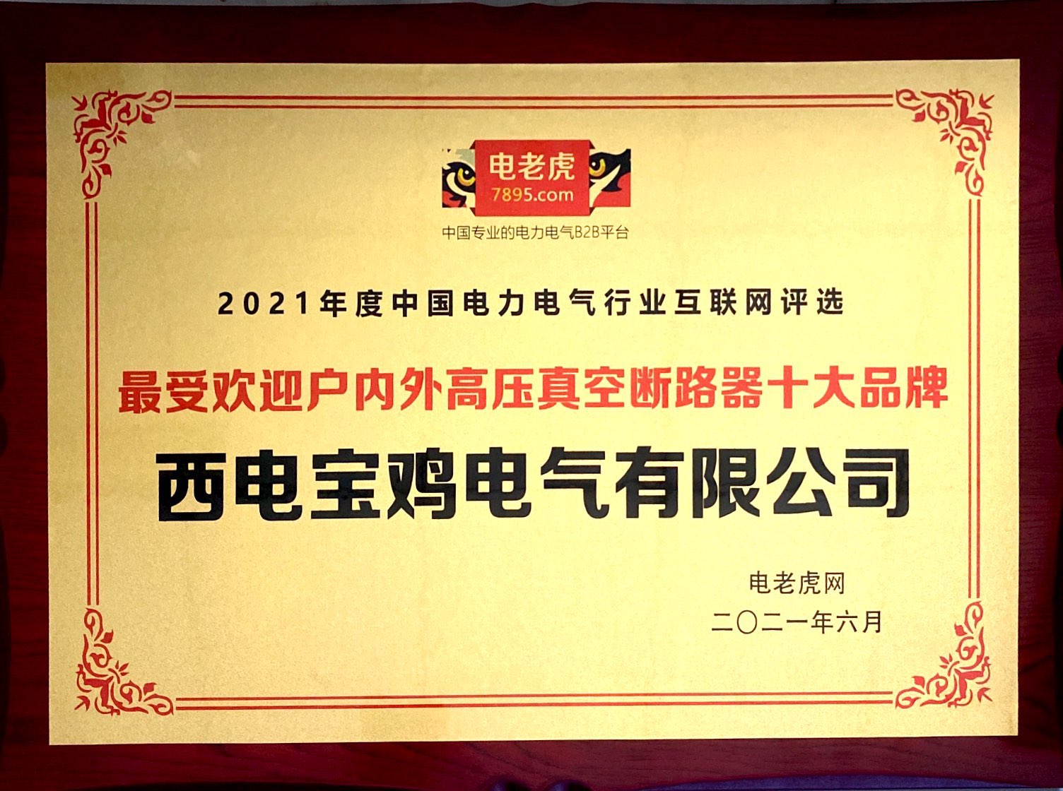 6月18日,電氣產(chǎn)品產(chǎn)業(yè)子集團(tuán)所屬西電寶雞電氣有限公司(以下簡稱“西電寶雞電氣”)在南京召開的2021 中國電力能源采購峰會暨變壓器成套電氣產(chǎn)業(yè)鏈采購大會上,獲得2021年度“最受歡迎戶內(nèi)外高壓真空斷路器十大品牌”榮譽(yù)稱號。本次評選活動有近百家超實(shí)力的戶內(nèi)外高壓真空斷路器生產(chǎn)企業(yè)參加,西電寶雞電氣憑借先進(jìn)的生產(chǎn)工藝、穩(wěn)定的產(chǎn)品質(zhì)量,超強(qiáng)的品牌傳播、優(yōu)質(zhì)的系統(tǒng)服務(wù),超高的人氣支持榮獲此殊榮。