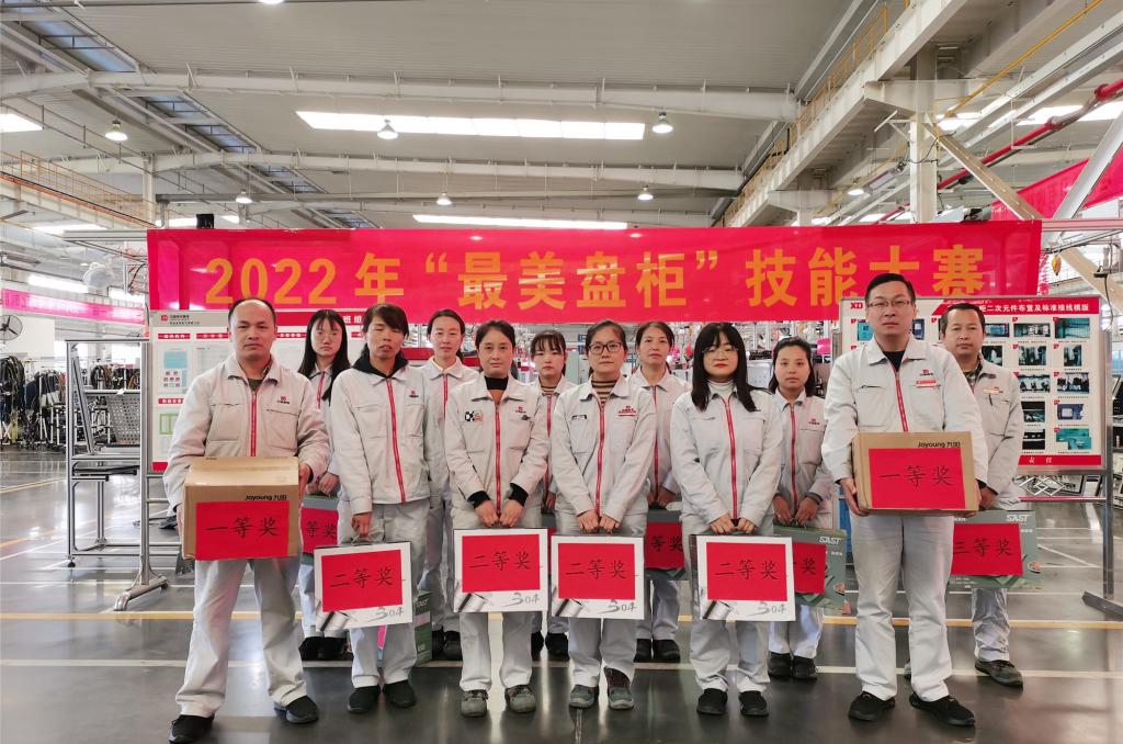 姚書(shū)勤做總結(jié)講話(huà),他對(duì)“最美盤(pán)柜”比賽取得的成績(jī)予以肯定和鼓勵(lì),對(duì)獲獎(jiǎng)員工表示祝賀,他要求:一是公司將持續(xù)為廣大職工提供和搭建更多的學(xué)習(xí)機(jī)會(huì)和展示平臺(tái),希望廣大職工愛(ài)崗敬業(yè),樹(shù)立更高要求和目標(biāo),努力提升專(zhuān)業(yè)技能和業(yè)務(wù)水平,為公司生產(chǎn)出“最美”盤(pán)柜繼續(xù)努力。二是質(zhì)量是企業(yè)的生命線(xiàn),要對(duì)標(biāo)集團(tuán)各兄弟單位,持續(xù)推進(jìn)精益化管理,以開(kāi)展質(zhì)量月活動(dòng)為契機(jī),弘揚(yáng)工匠精神,堅(jiān)持質(zhì)量第一,營(yíng)造人人關(guān)心質(zhì)量、重視質(zhì)量、追求質(zhì)量、創(chuàng)造質(zhì)量的良好氛圍。三是廣大職工要持續(xù)加強(qiáng)業(yè)務(wù)技能培訓(xùn)和學(xué)習(xí),充分用好公司市級(jí)“職工書(shū)屋”資源,不斷提升專(zhuān)業(yè)技能,為企業(yè)高質(zhì)量發(fā)展貢獻(xiàn)自己的力量。