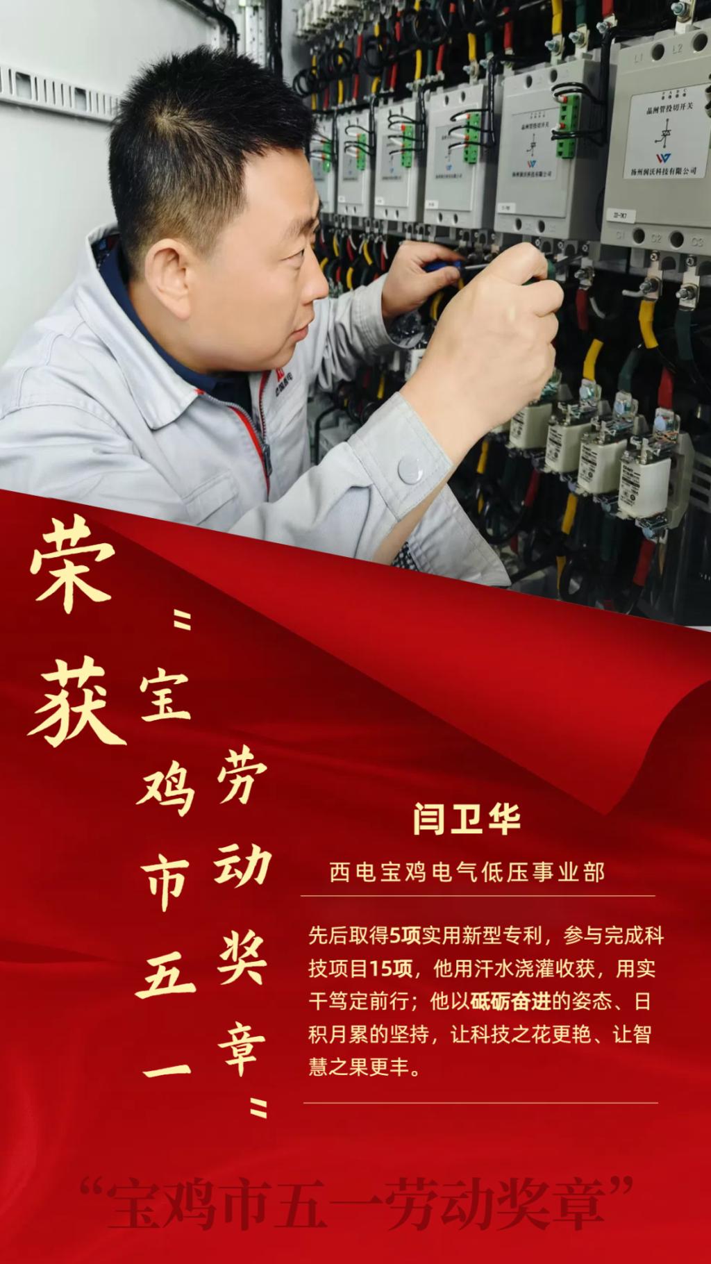 人間最美是勞動,花團錦簇迎“五一”。在五一國際勞動節(jié)到來之際,西電寶雞電氣毛寧星獲評“中國電氣裝備工匠”、閆衛(wèi)華獲評“寶雞市五一勞動獎章”,進一步激勵公司廣大干部職工大力弘揚勞動精神,激揚奮斗情懷,為寶雞市社會經濟及企業(yè)高質量發(fā)展做出新的更大的貢獻。