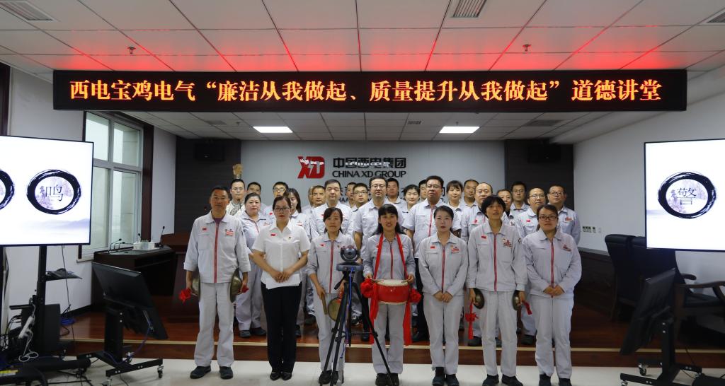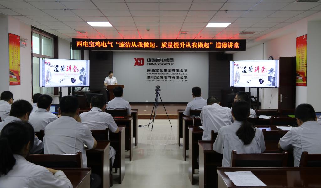為進(jìn)一步貫徹落實(shí)習(xí)近平新時(shí)代中國(guó)特色社會(huì)主義思想,踐行社會(huì)主義核心價(jià)值觀,推進(jìn)黨史學(xué)習(xí)教育、黨風(fēng)廉政建設(shè)和反腐敗工作進(jìn)支部、進(jìn)班組、進(jìn)崗位,以崇德尚廉的精神面貌慶祝建黨100周年,同時(shí),為進(jìn)一步將“質(zhì)量月”活動(dòng)引向深入,9月24日下午,寶光集團(tuán)黨委所屬西電寶雞電氣黨委主辦、質(zhì)量物資黨支部承辦了“廉潔從我做起,質(zhì)量提升從我做起”主題道德講堂。西電寶雞電氣黨委副書記、總經(jīng)理余明星,寶光集團(tuán)(西電寶雞電氣)黨委副書記、紀(jì)委書記姚書勤出席道德講堂。