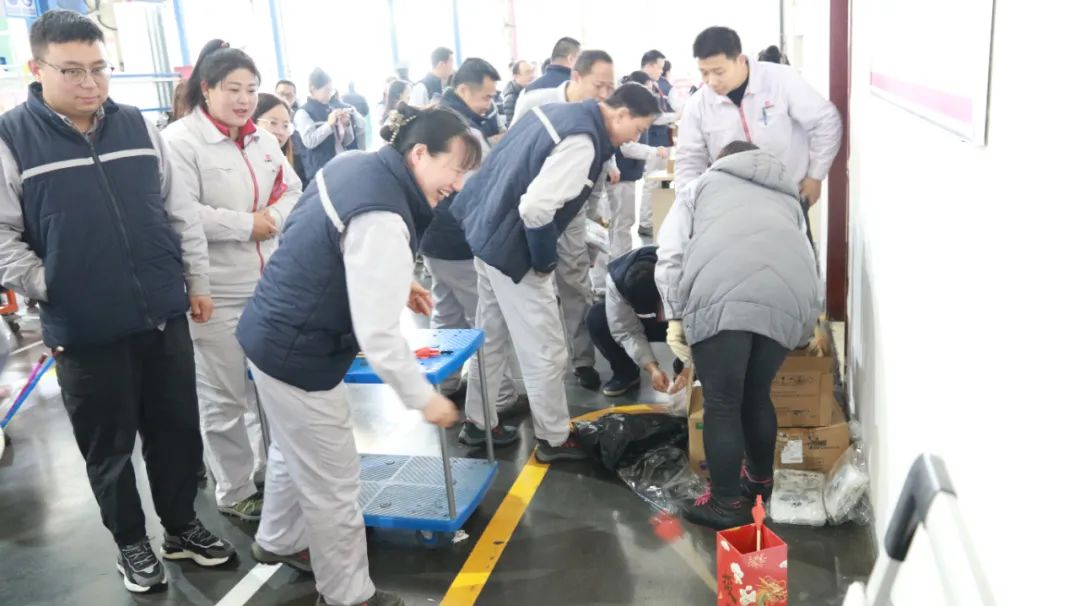 “快樂跳跳”游戲,一組五人按照指令跳到指定區(qū)域,職工們紛紛使出渾身解數(shù)完成規(guī)定的游戲目標(biāo),隨著指令越來越快,大家伙著急的動(dòng)作讓在場(chǎng)的觀眾忍俊不禁。